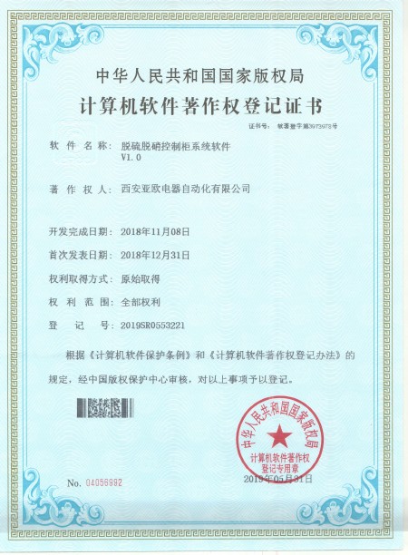 - 關于我們 - 資質榮譽 - 脫硫脫硝控制柜系統(tǒng)軟件