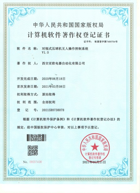 - 關于我們 - 資質榮譽 - 對輥石壓球機無人操作控制系統