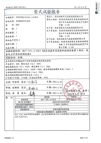 - 關于我們 - 資質榮譽 - 交流低壓開關柜(GGD)資質